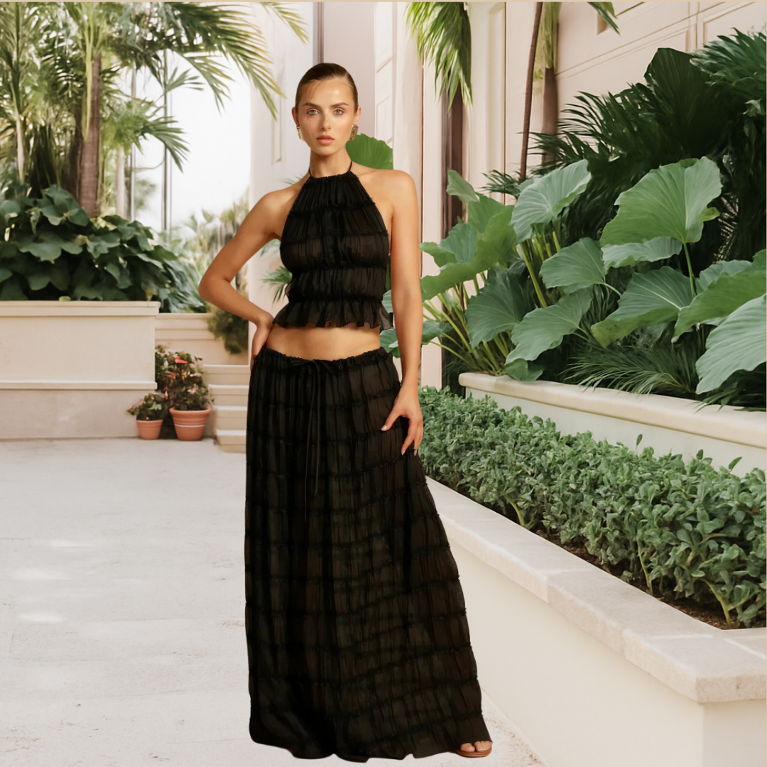 Lehká sukně, strukturovaný top, vzhled, který s vámi tančí.